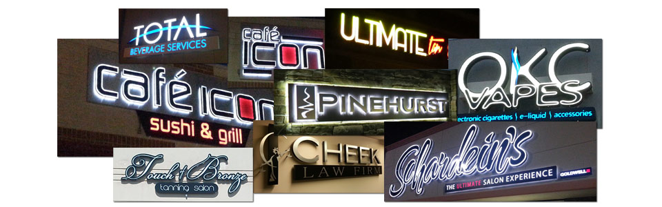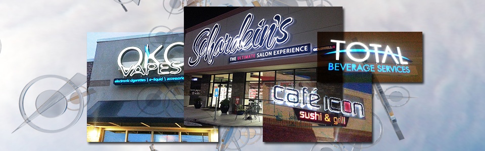 Whether you have a restaurant, retail store, multifamily property or standard commercial businesses, we can provide the highest quality custom business signs. We can make your logo into a beautiful channel letter sign with LED illuminated faces, halo back lighting, or both. If you don’t have a logo let us design one for you, as we did for OKC Vapes, Cheek Law Firm, Schardein’s New Talent Salon, Ultimate Tan & Tone and many more. In fact, that is often one of the first projects we take on for our client, to design a logo for their company and/or brand. From that design foundation we design their exterior wall signs, box signs, menus, t-shirts, you name it.