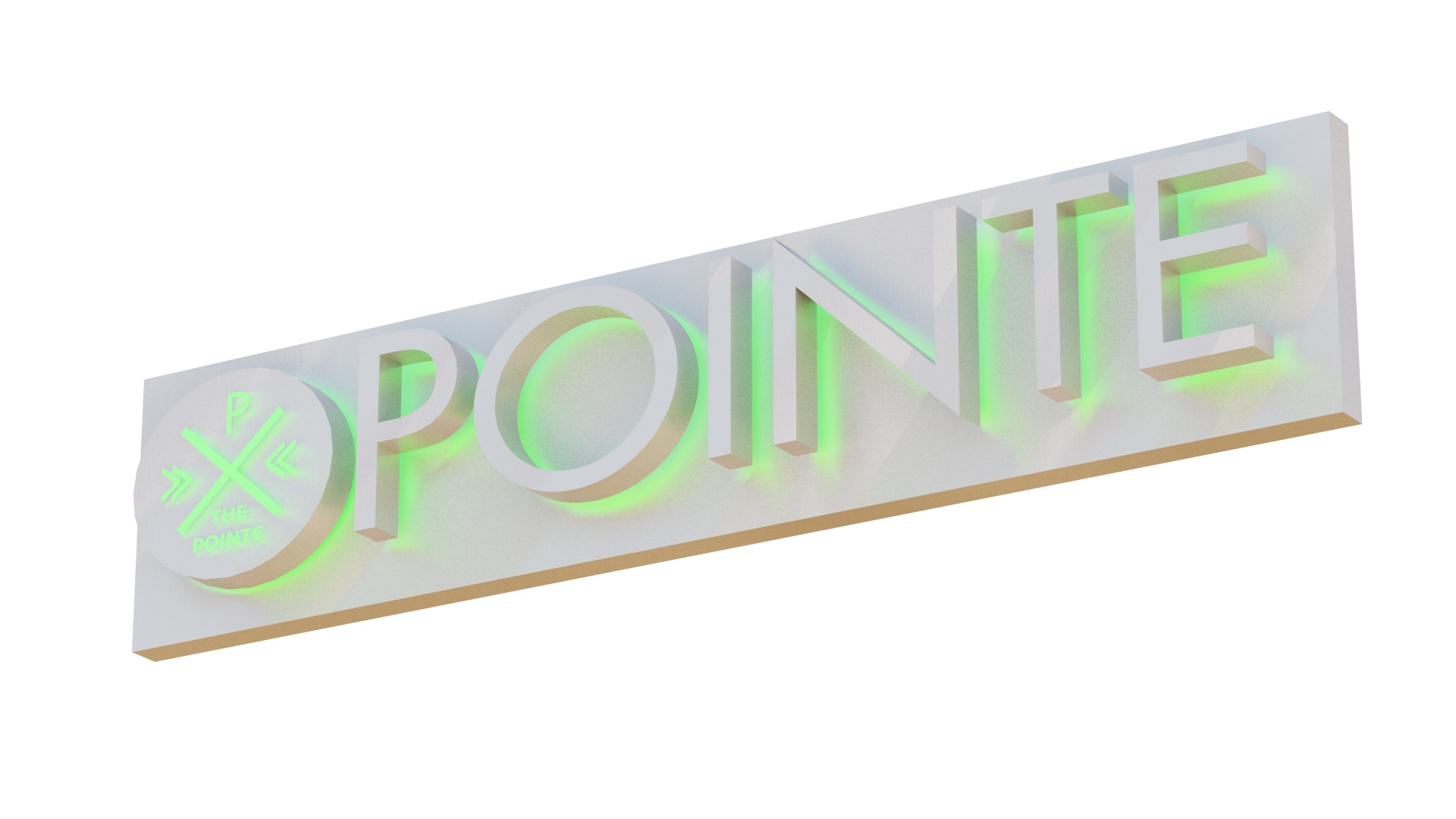 The Pointe is quickly becoming the place to live when you’re slaving away paying your college dues, with a swimming pool, movie theater, a full media lab and pre-wired tech in every unit, wow. Awesome is an under statement. Electremedia is proud to be tasked with taking their logo concept into the realm of signage, and mold it into an illuminated entrance sign for their facilities across the nation. Granted, you’ll have to be near the University of Illinois to see this one, but who knows where things may lead!