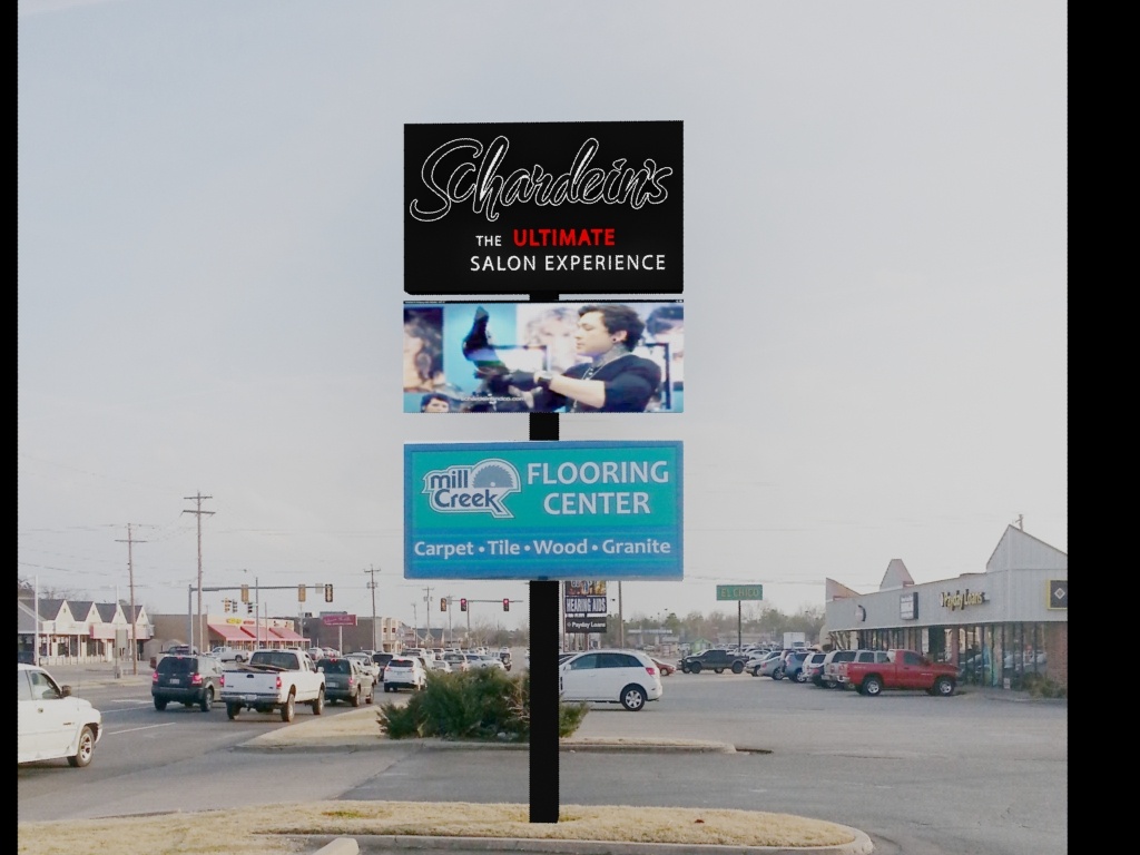 We are very excited to have Steve Schardein of Schardein & Co. salons hire Electremedia to design and provide all of the signage for their new retail relocation and expansion. Steve is a real rock star in the salon world in Oklahoma City, and he really knows his craft. Electremedia has designed 2 new wall signs (22′ and 31′ wide), a new pole sign and is doing a lot of sign refacing and relocating for his new building at the corner of Britton and May Ave.