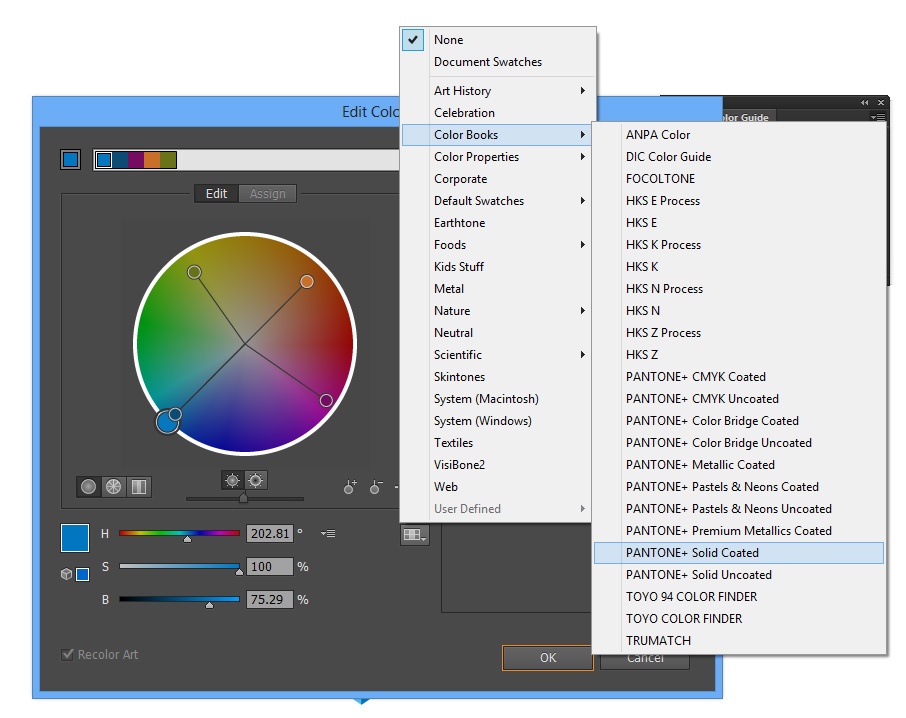 Select the color types your printer is going to use, in this case I chose Pantone Coated.